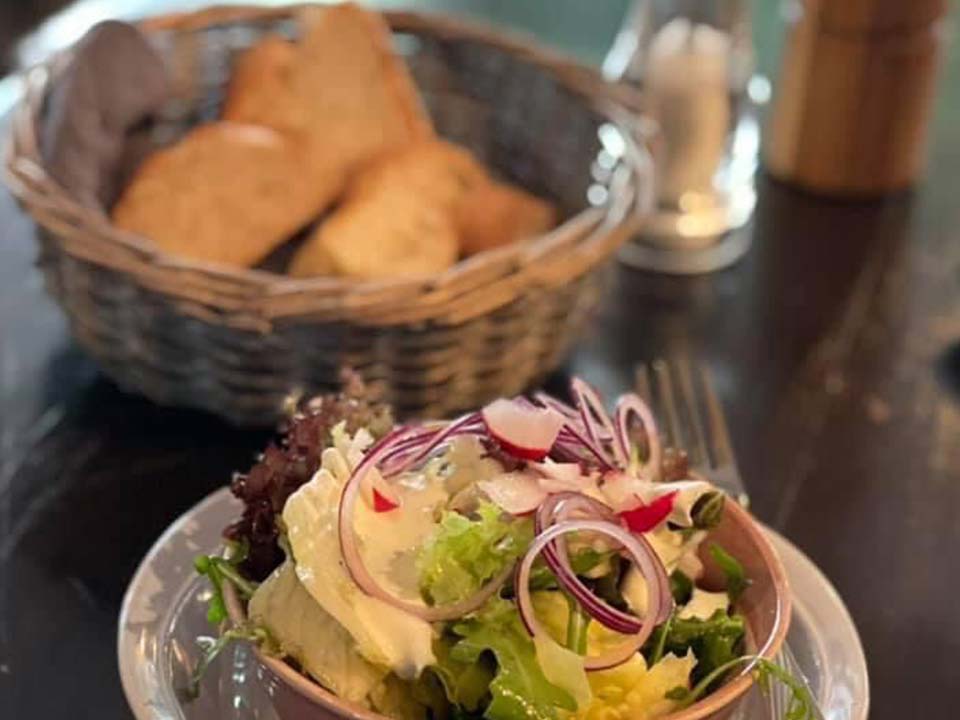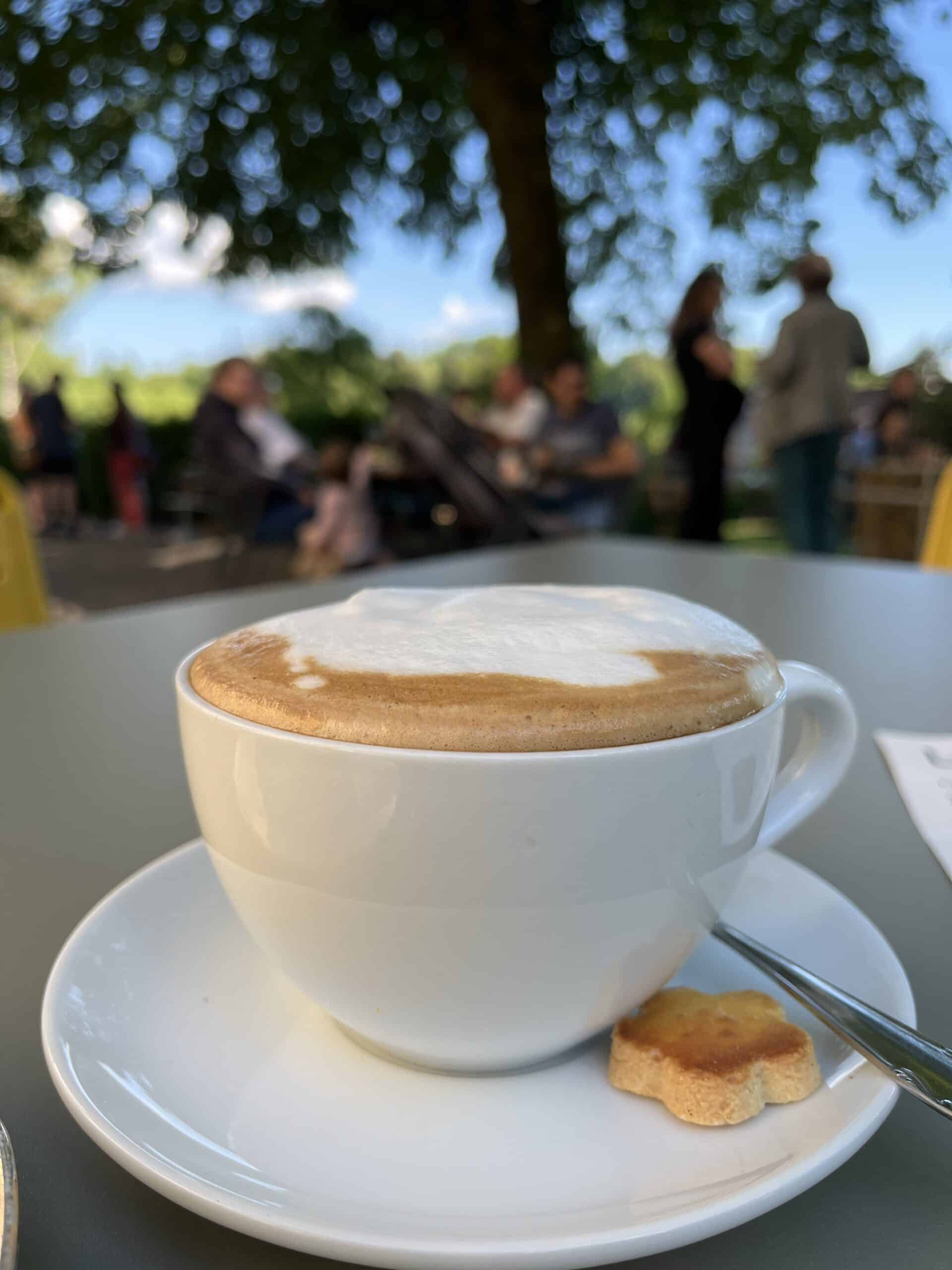 Wenn du zwischen Frühstück und Abendessen Hunger bekommst: es gibt auf dem Gelände ein schönes Café, das Mittags Kleinigkeiten anbietet und leckere Kuchen serviert.